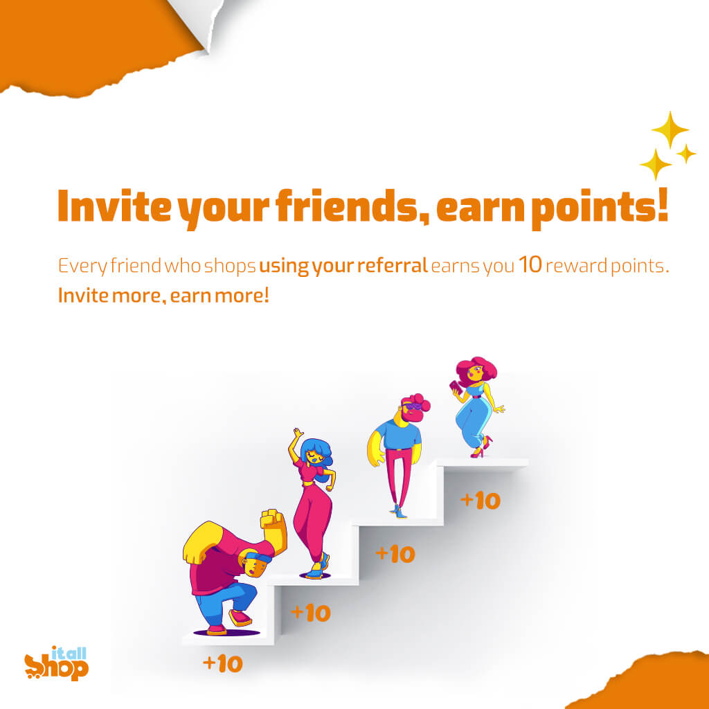 With these points, you and your friend can enjoy the excitement of free shopping on our website. What could be better than that